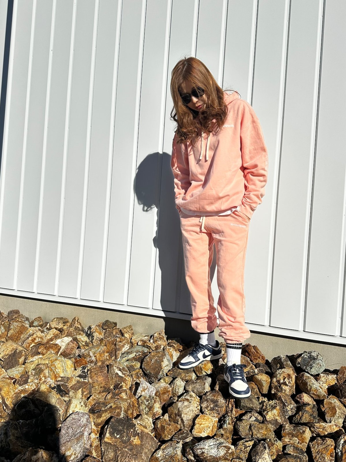 ライトウェイト6.4(oz)フリース素材にガーメントダイ(ピグメント染め)をほどこした「軽い着心地」と「おしゃれなカラーリング」が特徴のアイテムです。