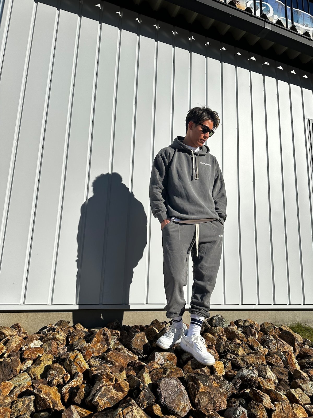 ライトウェイト6.4(oz)フリース素材にガーメントダイ(ピグメント染め)をほどこした「軽い着心地」と「おしゃれなカラーリング」が特徴のアイテムです。