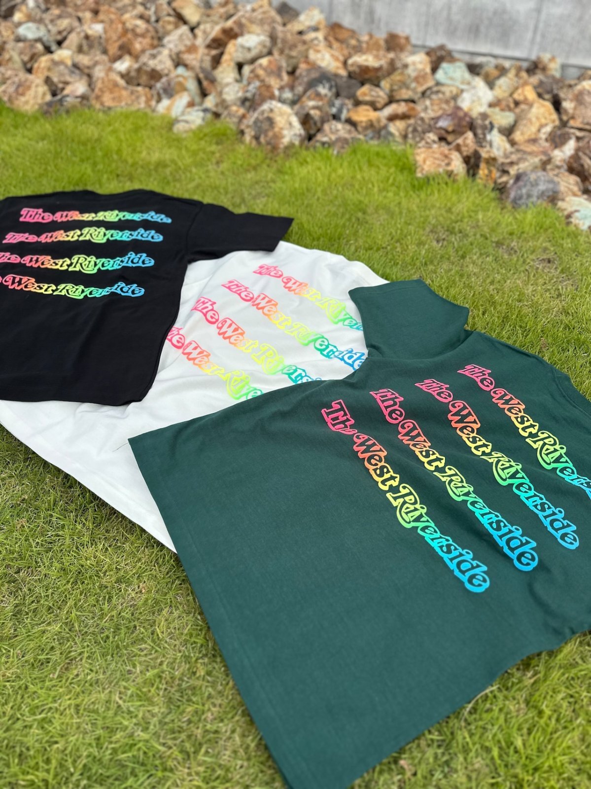 背面に鮮やかなレインボーロゴの大胆なバックプリントが特徴!