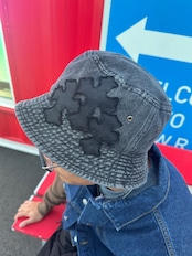 ブラックデニムを大胆にクロスモチーフで施した唯一無二のリメイクバケットハット。