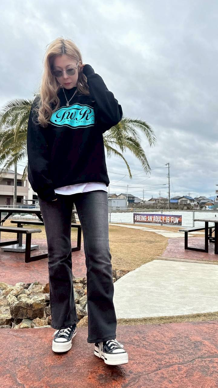 フロントに配置された「T.W.R.」のオーバルロゴが、洗練されたティファニーブルーで彩られた一着。重くなりがちなブラックボディに、鮮やかなブルーが絶妙なコントラストを生み出し、上品さとストリート感を両立させました。