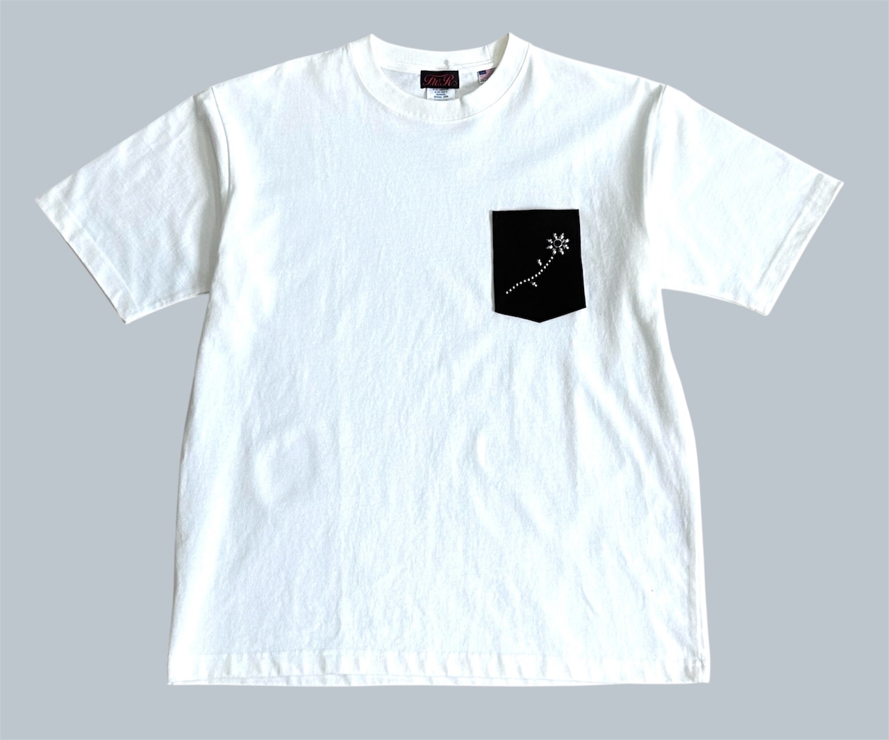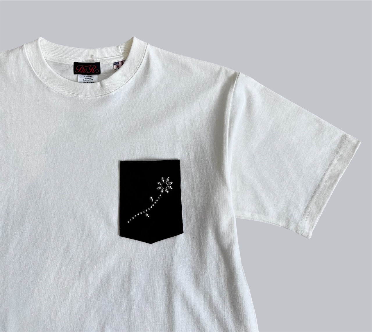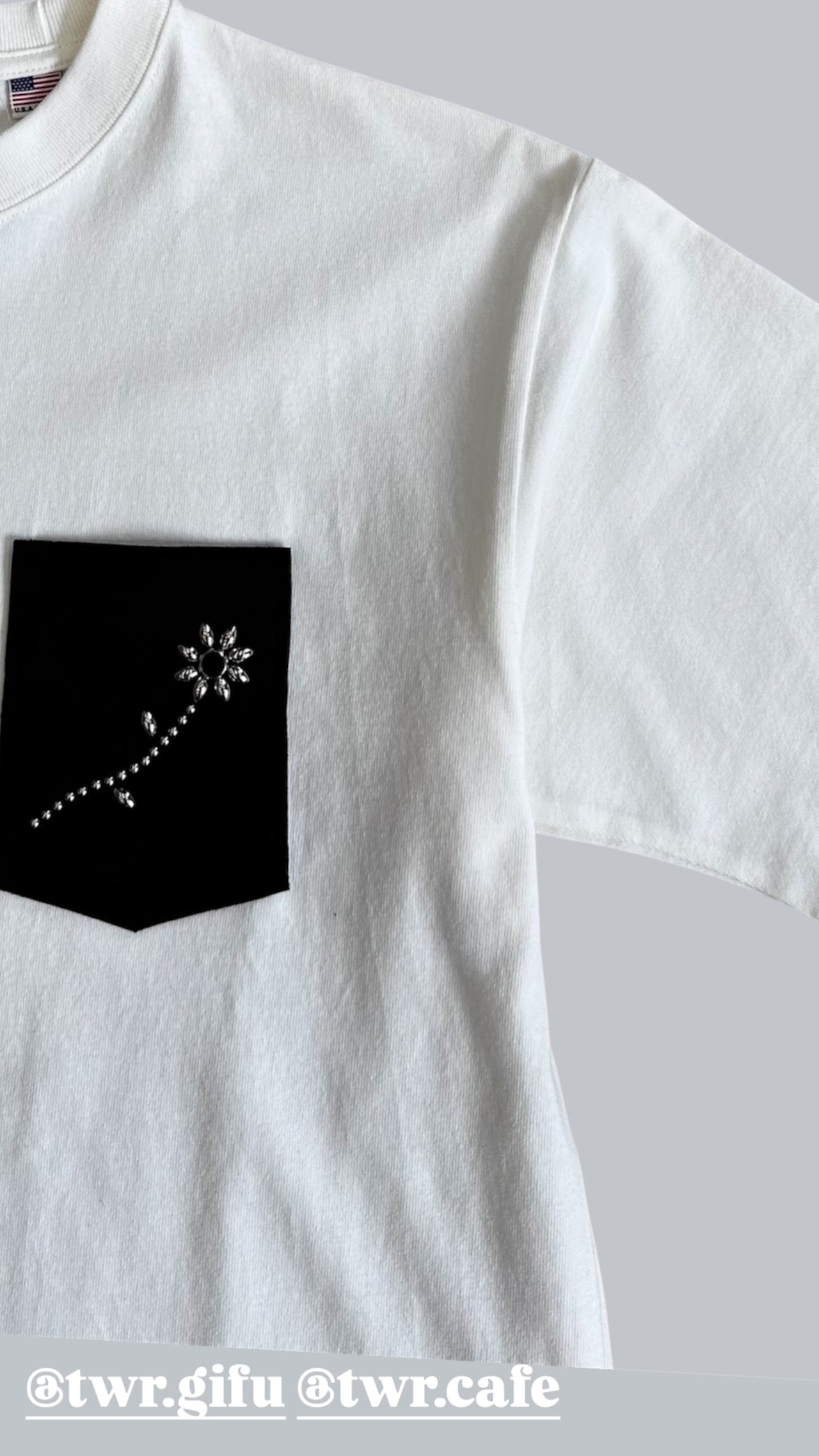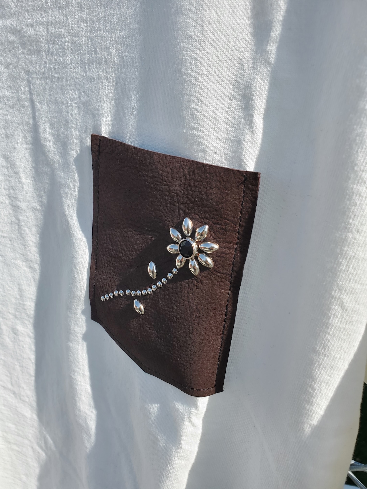 オフホワイトの半袖Tシャツにレザーポケットと付けました!